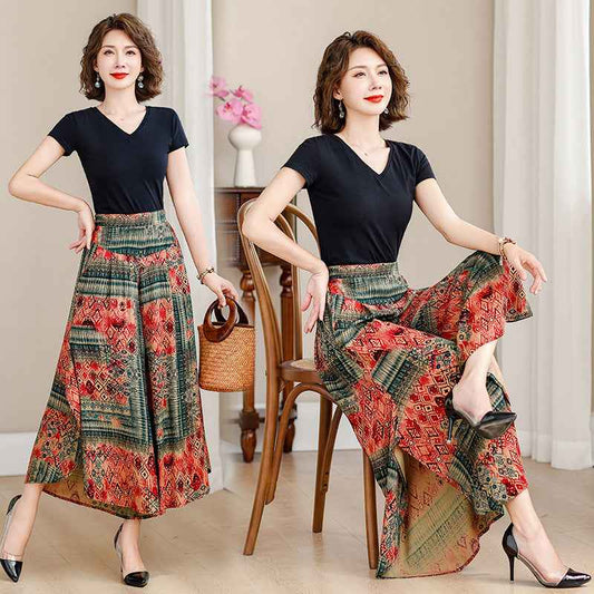 Printed Wide-Leg Pants - Lightweight Summer Chiffon Trousers