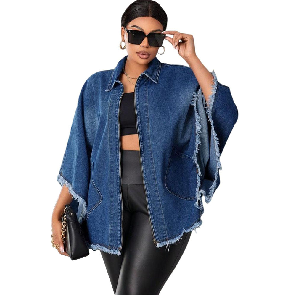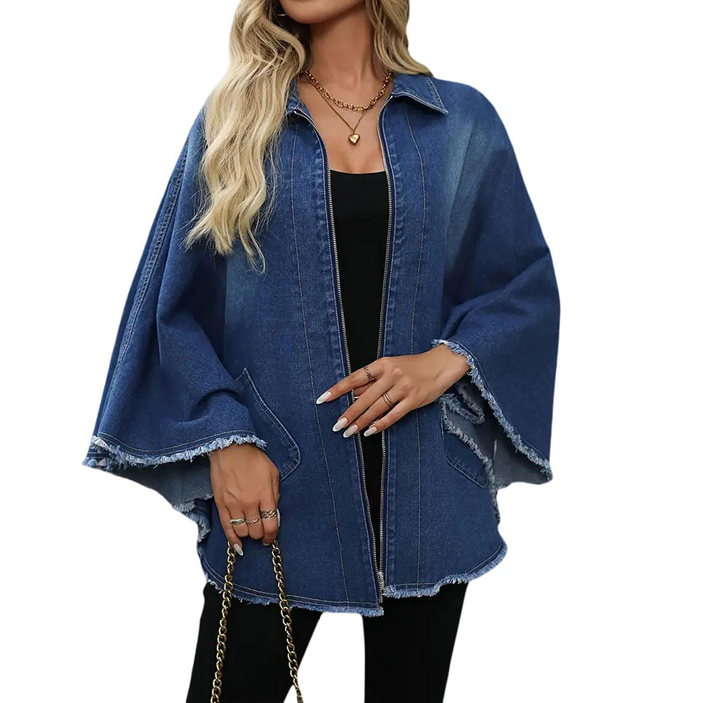 Women's Denim Jacket | Loose Fit Bat Sleeve Streetwear
