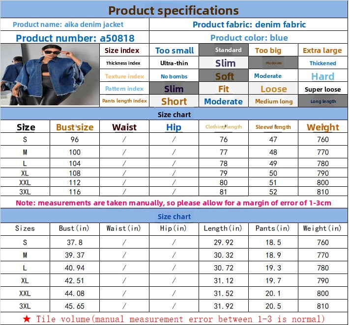 Denim Fabric: High-quality polyester denim material for durability and comfort.